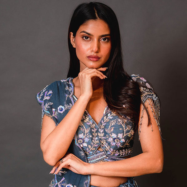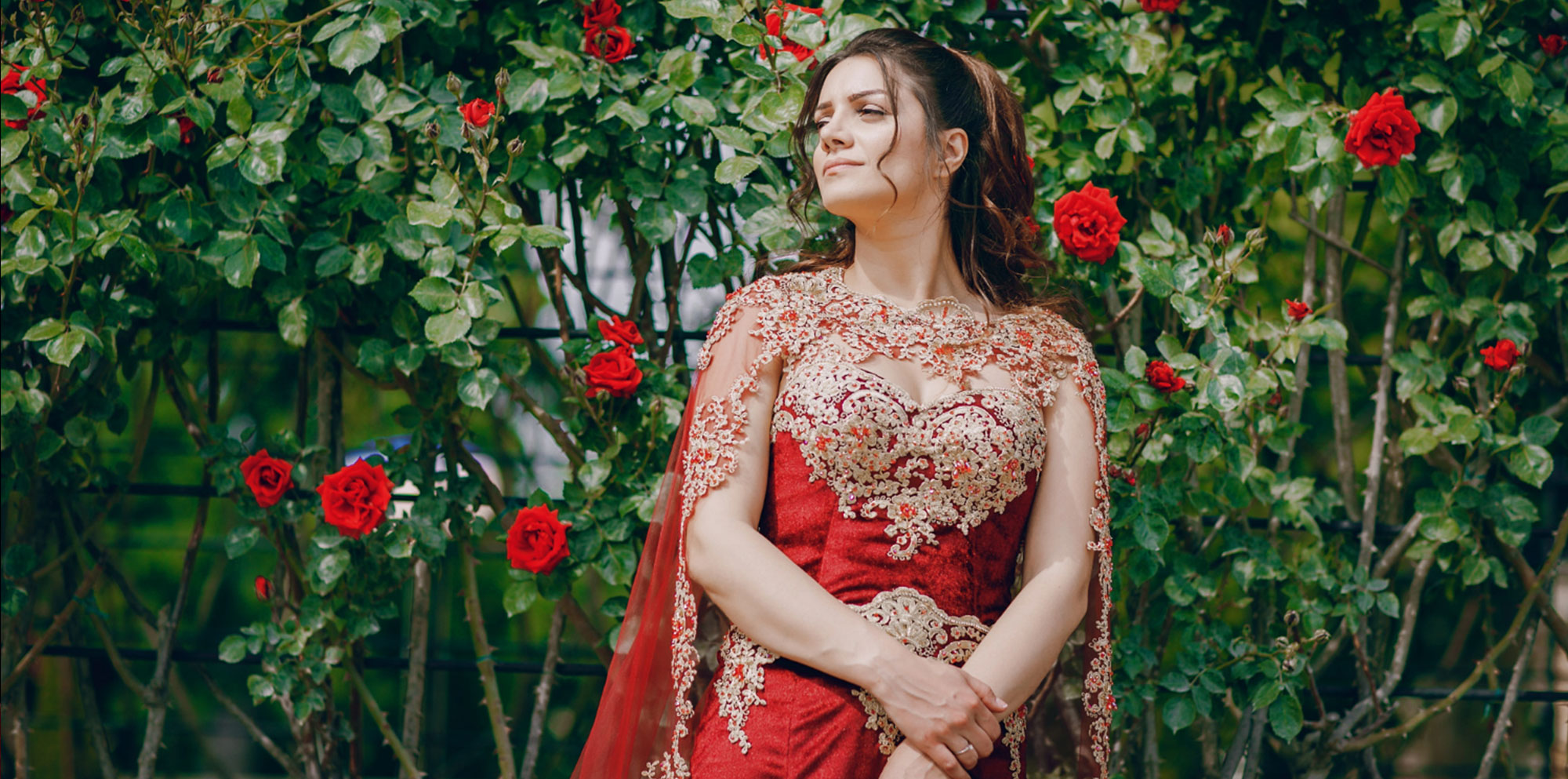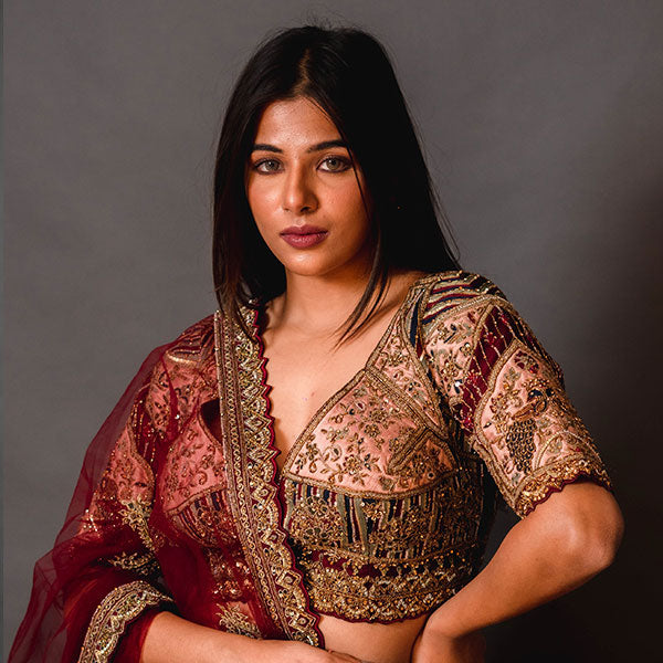Hot Pink Velvet Bridal Lehenga with Emerald Green Blouse